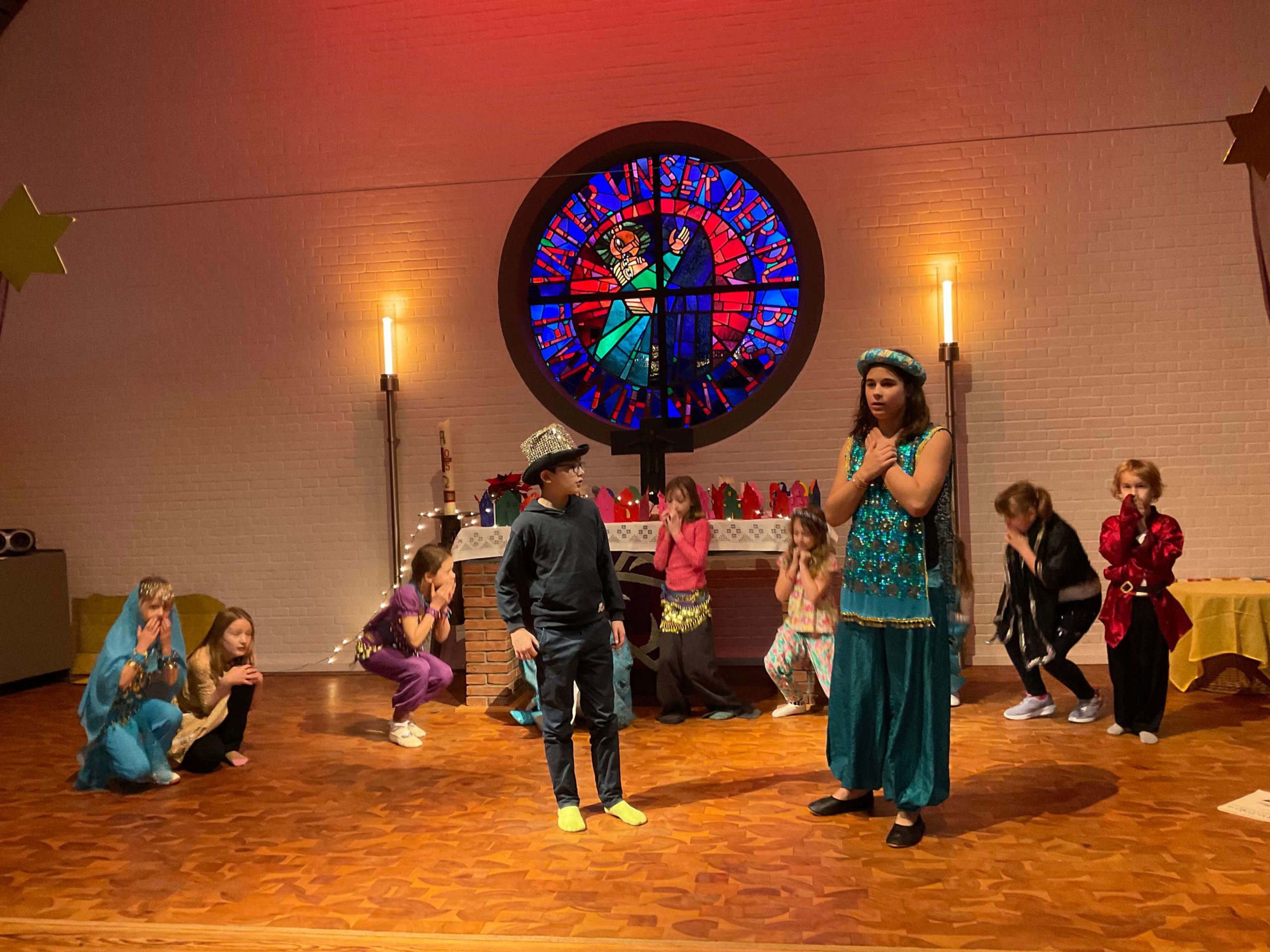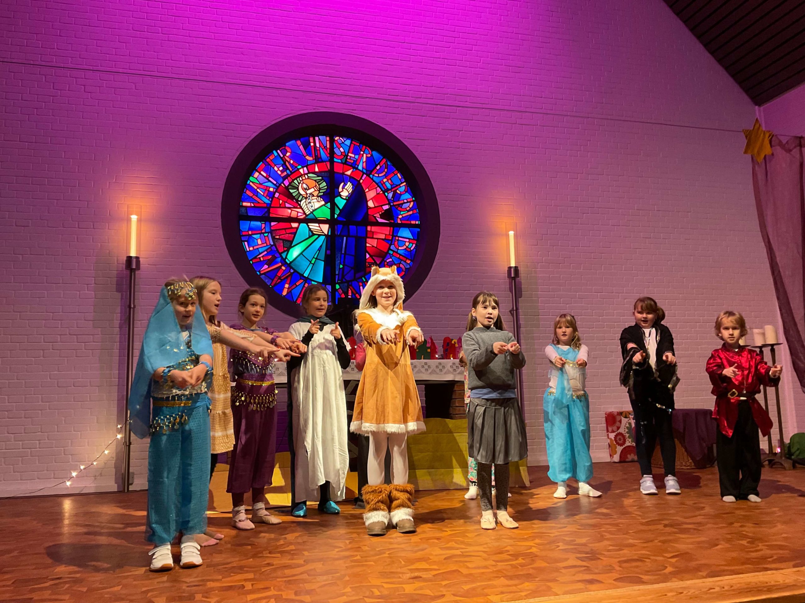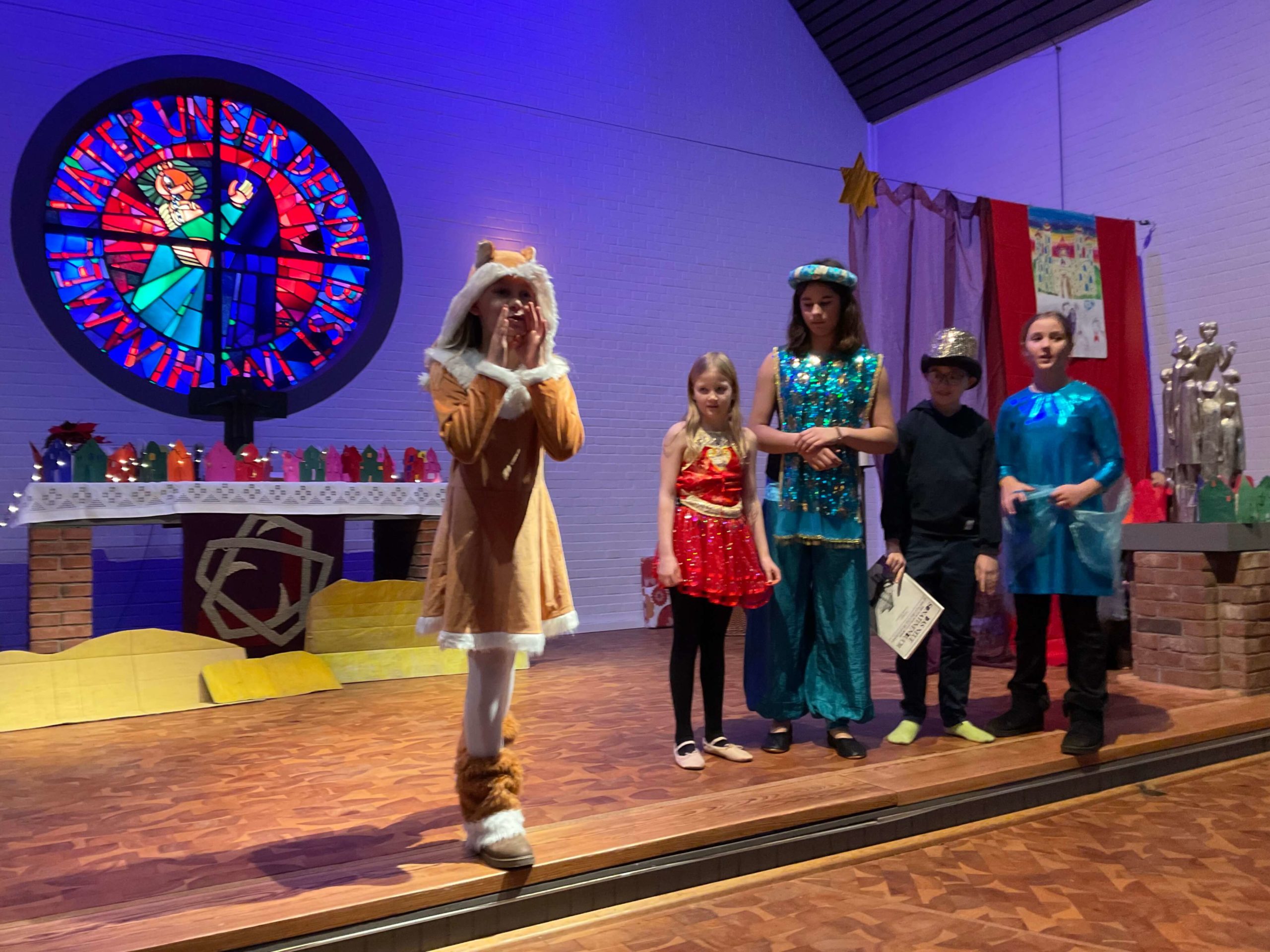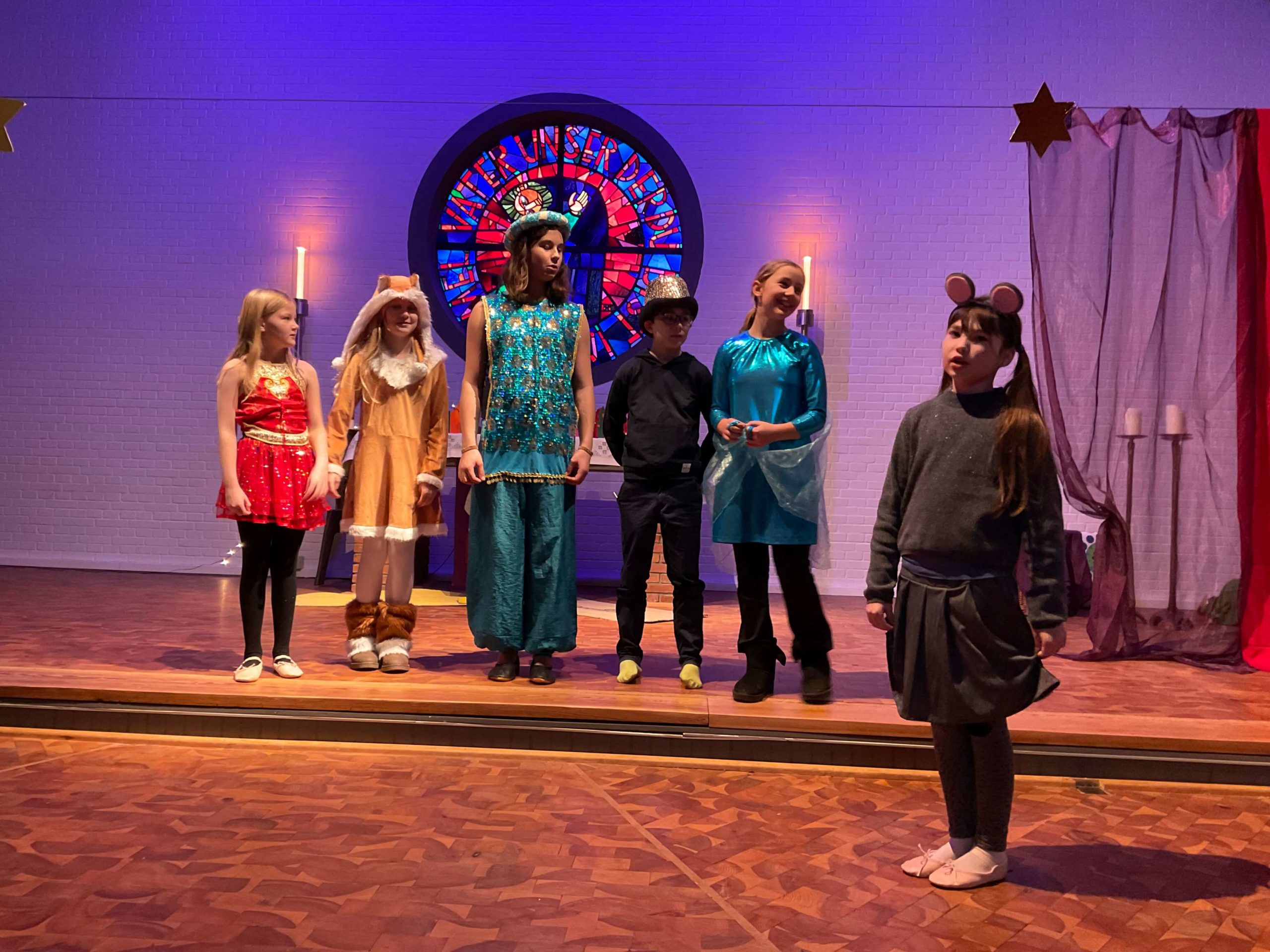 Generalprobe unserer Weihnachtsaufführung „ Prinzessin Emira und die verlorene Stimme“ in der Kirche in Osdorf am 10.12.2025. Am 10.12.2025 fuhren wir alle gemeinsam mit dem ÖPNV von unserer Schule zur Kirche nach Osdorf um dort fleißig unsere Weihnachtsaufführung zu proben. Die Proben haben sehr gut geklappt, so dass unsere Weihnachtsaufführung wundervoll war! Vielen Dank an alle Freunde und Eltern, die uns unterstützt haben und sich unsere Aufführung angeschaut haben!