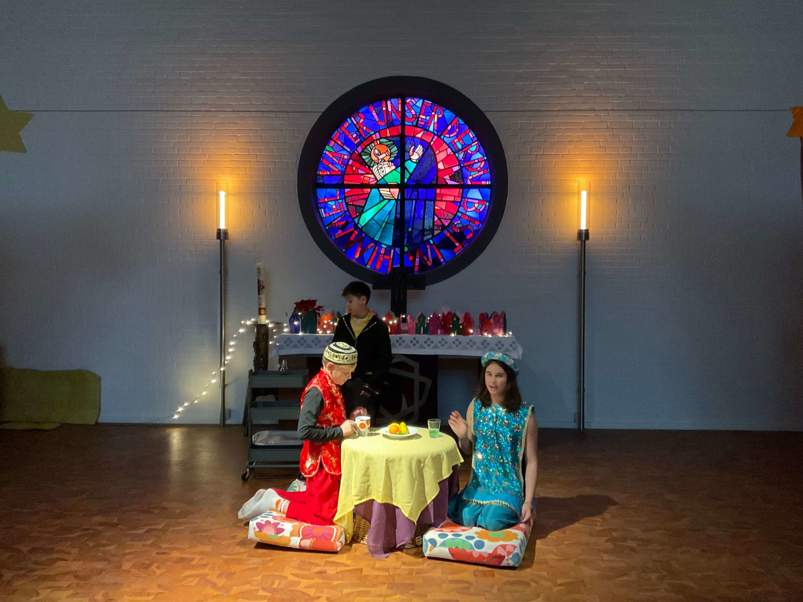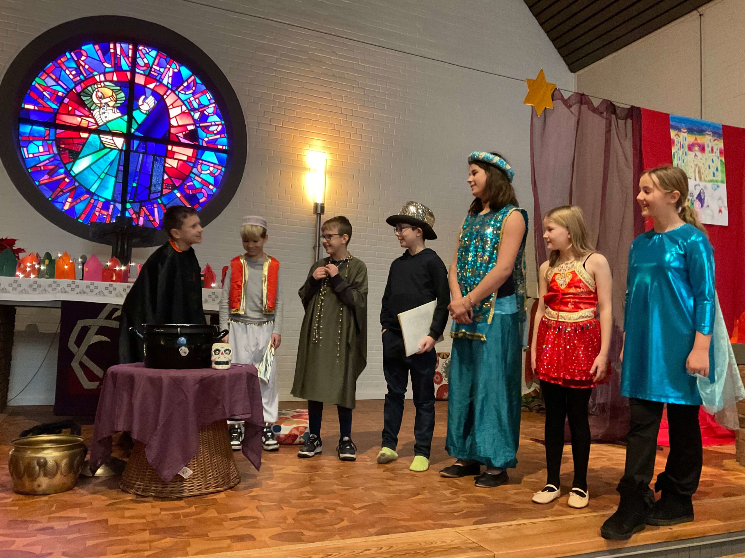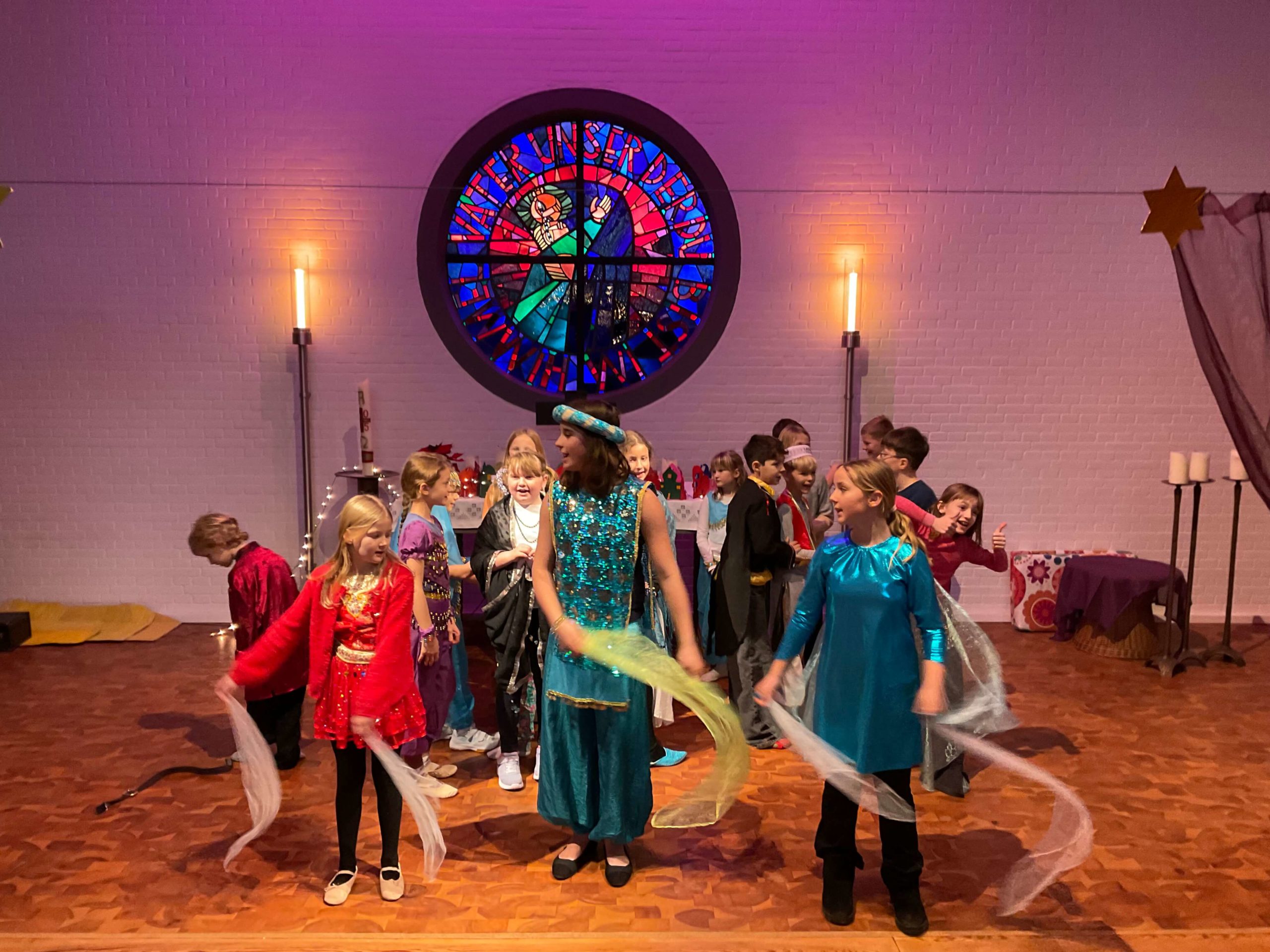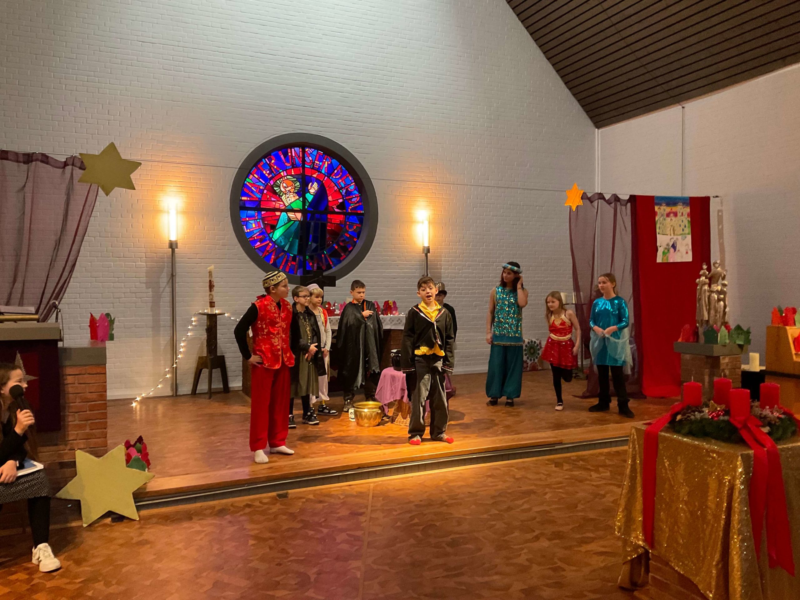 Generalprobe unserer Weihnachtsaufführung „ Prinzessin Emira und die verlorene Stimme“ in der Kirche in Osdorf am 10.12.2025. Am 10.12.2025 fuhren wir alle gemeinsam mit dem ÖPNV von unserer Schule zur Kirche nach Osdorf um dort fleißig unsere Weihnachtsaufführung zu proben. Die Proben haben sehr gut geklappt, so dass unsere Weihnachtsaufführung wundervoll war! Vielen Dank an alle Freunde und Eltern, die uns unterstützt haben und sich unsere Aufführung angeschaut haben!