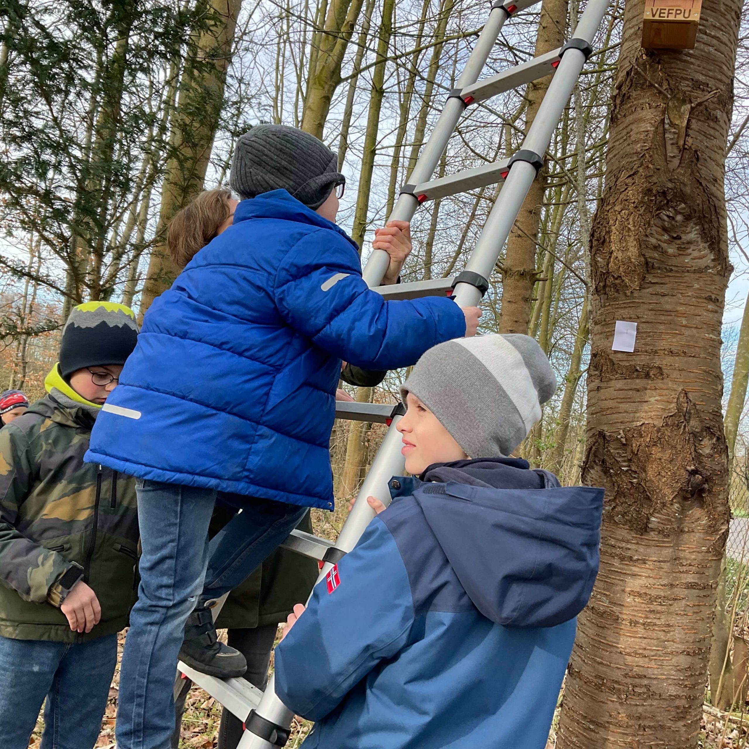 Mit diesen Fragen beschäftigten sich die Kinder der 2b und luden dazu den Experten Jörg Hantelmann vom Naturschutzverein VEPU, dem Verein zur Entwicklung naturnaher Fließgewässer in Probstei und Umgebung, an die Grundschule Osdorf ein. Mit ihm suchten die Kinder geeignete Standorte für die vom Verein gespendeten Nistkästen und hängten diese auf dem Schulhof und im Schulwald auf. Einige Nistkästen sind Beobachtungskästen, so dass die Kinder durch eine Sichtscheibe die Vögel beim Brüten beobachten können.