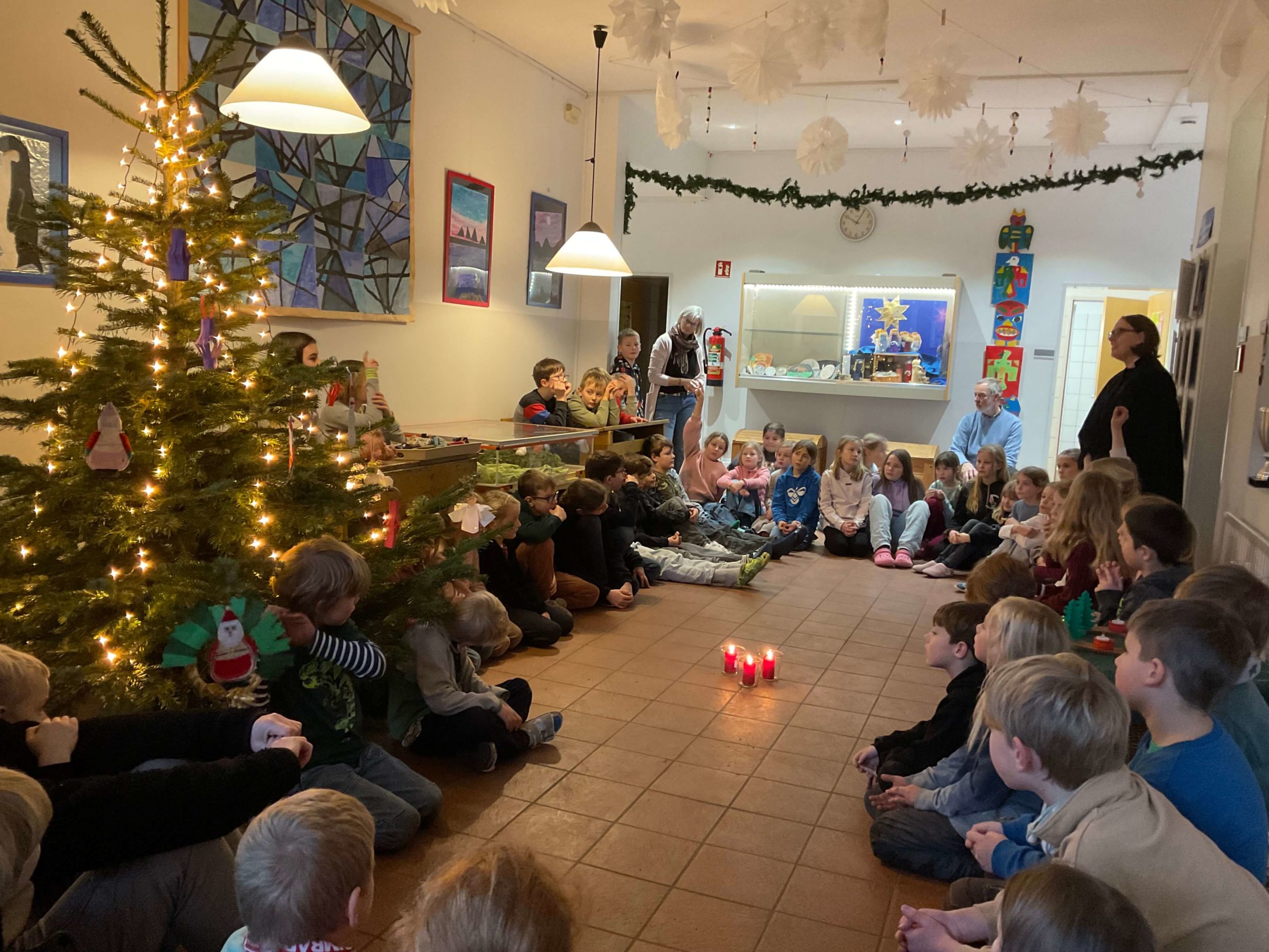 Am 5.12.2025 besuchte uns Frau Pastorin Gattermann. Wir sangen gemeinsam Nikolauslieder und wir trugen Gedichte vor. Frau Gattermann hat uns eine spannende Geschichte vom Nikolaus vorgelesen und uns leuchtende Sterne mitgebracht. Vielen lieben Dank für den Besuch!