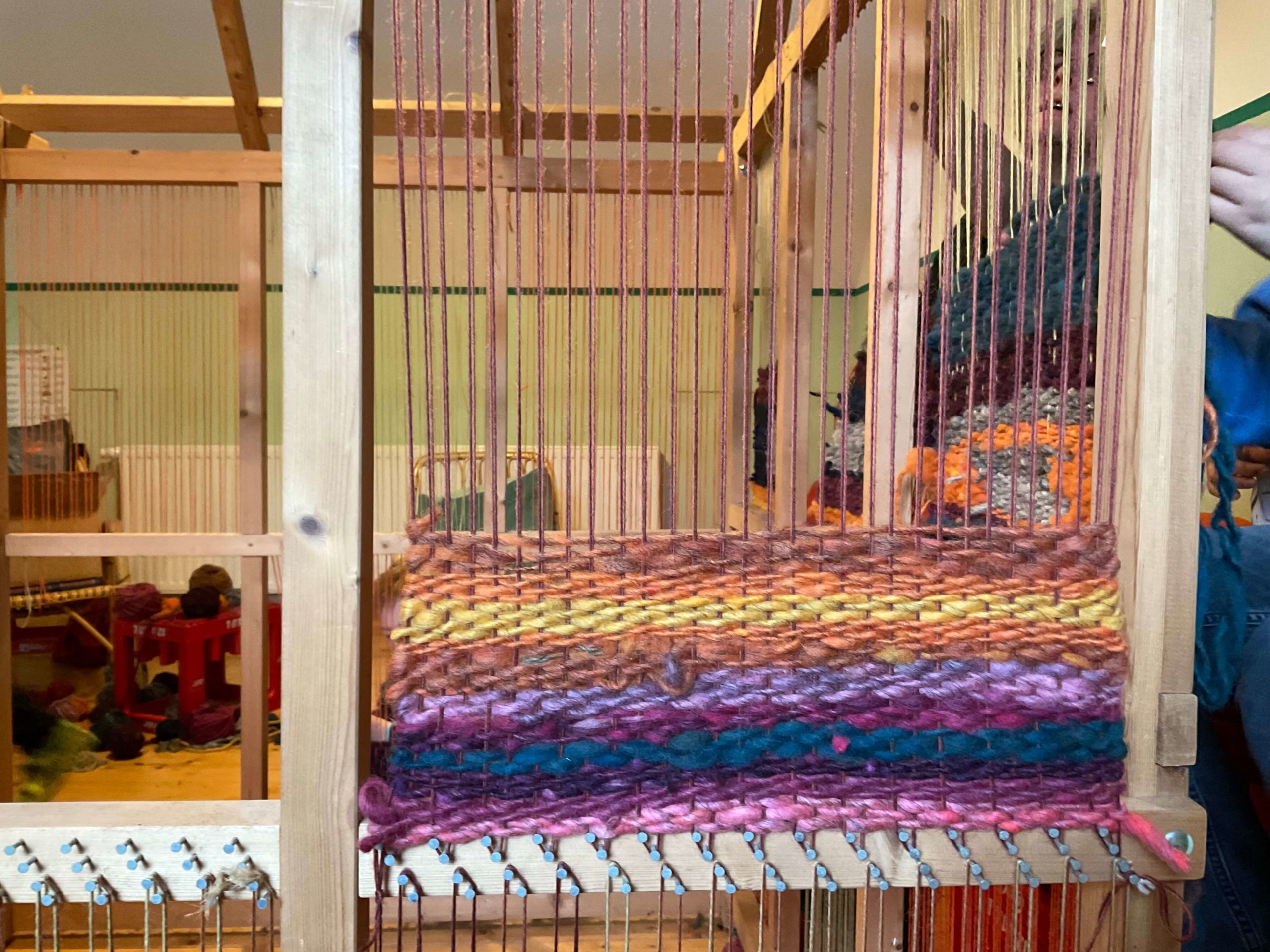 Immer Mittwochs bekommen wir Besuch vom Spinntreff Felm und arbeiten an unserem Wollprojekt. Mit Unterstützung von Sabine Bauer und Petra Hofstetter weben wir mit selbst gesponnener und handgefärbter Schafwolle. Wir haben gerade wunderschöne Yoga- und Meditationsteppiche hergestellt. Vielen lieben Dank für die gemeinsamen Stunden!